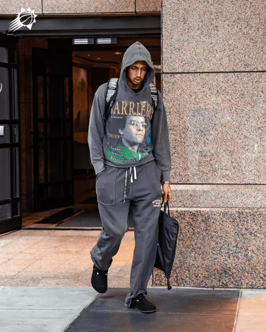 气质非凡!太阳官媒晒众球员赛前穿搭照:抵达亚特兰大